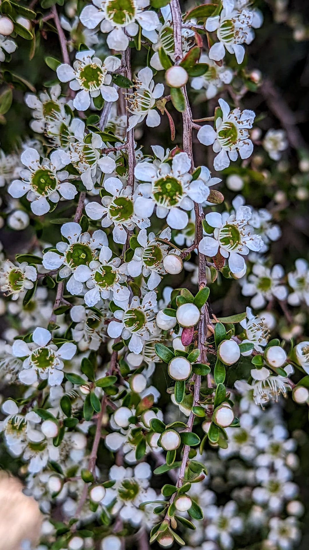 Ideal for cascading over retaining walls, rockeries, large pots or hanging baskets, this tea tree can also be planted for groundcover on slopes. It doesn’t need much maintenance, barely any pruning, is very waterwise and the masses of small white flowers that bloom in spring can transform the outdoor space or garden they’re gracing.